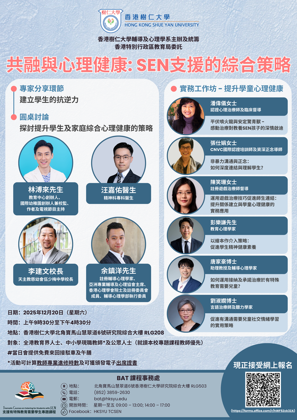 香港樹仁大學輔導及心理學系教職員參與武漢大學舉辦 -- 2025年兒童及青少年心理健康聯盟學術年會