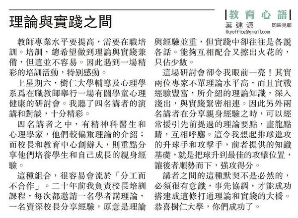 - 生命教練/中學校長/自殘學生 拆解學童情緒炸彈 及 英中校長:運動是減壓妙計