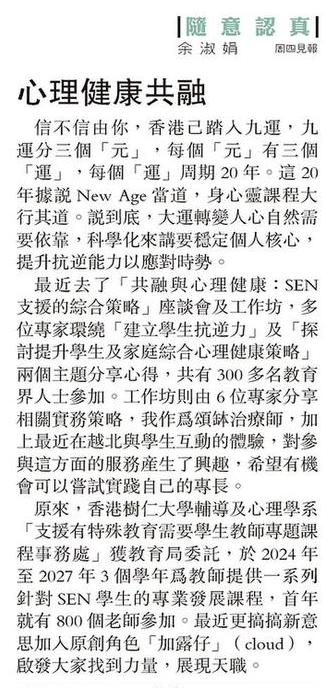 - 共融與心理健康:SEN支援的綜合策略