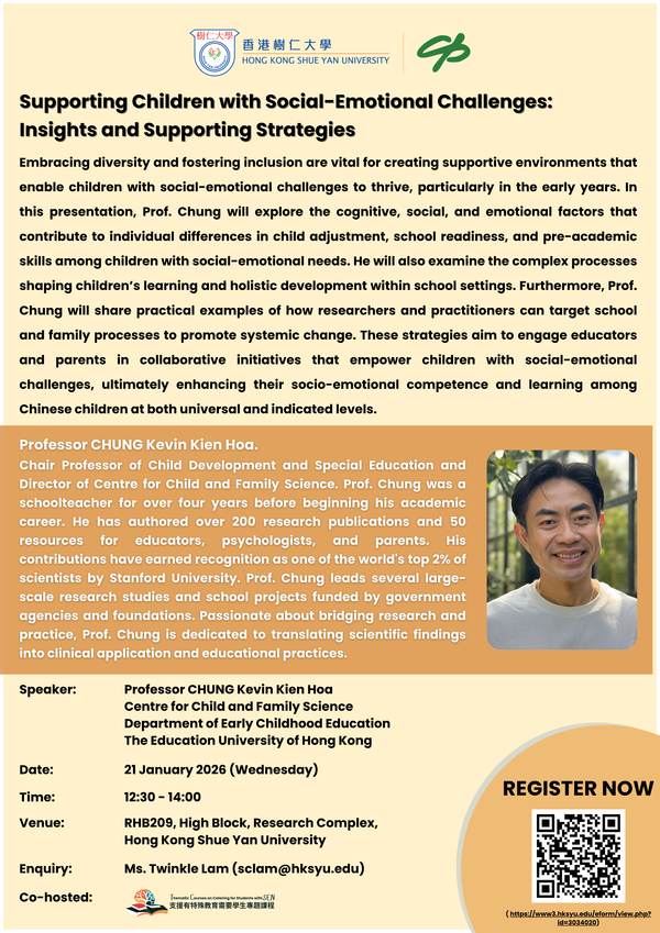 Research Seminar - Supporting Children with Social-Emotional Challenges: Insights and Supporting Strategies